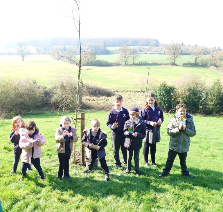 The tree was planted in the orchard on 4th March by the head boy and head girl from Horningsham Primary School. They were joined by children from Robins and Owls classes, members of the parish council, the headteacher, Mrs Odele Lapham, and Mrs Diane Perrett, teaching partner.